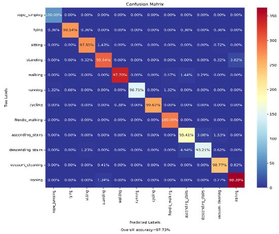 Confusion matrix achieved from the evaluation of our proposed Ensem-HAR model over the PAMAP2 dataset.