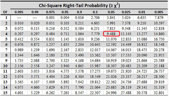 It can be seen from the Chi-square table (shown in Figure 22) that at (here 4) degrees of freedom (d.o.f), the standard Friedman static value at significance level 0.05 is found to be 9.49 which is much less than the calculated ones in Table 5. Hence, we can reject the null hypothesis. It can be said from the above experiment that the results achieved by the base models and proposed ensemble model are statistically significant, i.e., not equivalent.