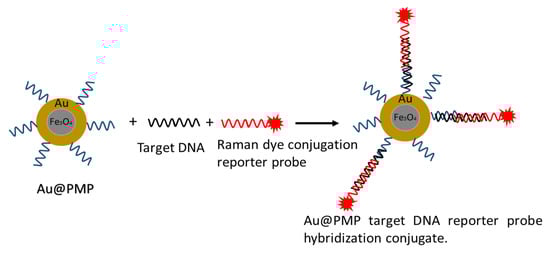 - Zhang, H.; Harpster, M.H.; Wilson, W.C.; Johnson, P.A. Surface-Enhanced Raman Scattering Detection of DNAs Derived from Virus Genomes Using Au-Coated Paramagnetic Nanoparticles. Langmuir 2012, 28, 4030–4037. [Google Scholar] [CrossRef]