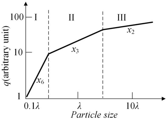 where , , and are the transformation factors between q and x. , , and are also related to the refractive index m, the observing angle , and x. Thus, the scattered light signal for a short wavelength can be described as: