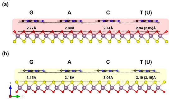 - Yang, H.; Liu, Y.; Gao, C.; Meng, L.; Liu, Y.; Tang, X.; Ye, H. Adsorption Behavior of Nucleobases on Doped MoS2 Monolayer: A DFT Study. J. Phys. Chem. C 2019, 123, 30949–30957. [Google Scholar] [CrossRef] [Green Version]