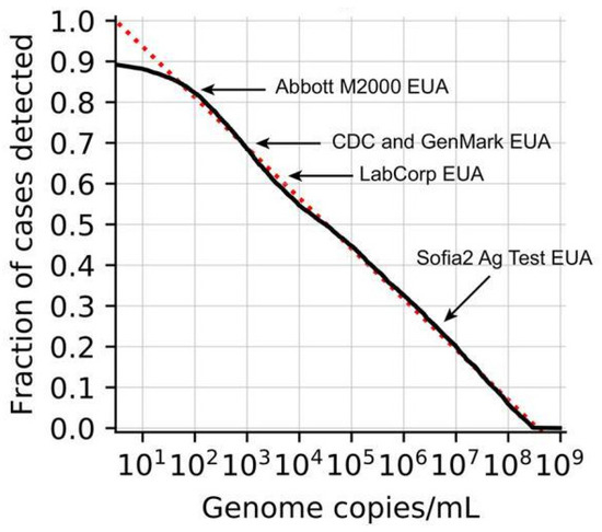 Fraction of SARS-CoV-2 detected are plotted against the LoD. Reprinted with permission from [41]. Copyright 2020, Arnaout et al., under Creative Commons Attribution 4.0 License.