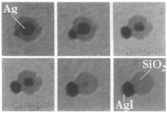 - Giersig, M.; Ung, Y.; Liz-Marzan, L.M.; Mulvaney, P. Direct Observation of Chemical Reactions in Silica-Coated Gold and Silver Nanoparticles. Adv. Mater. 1997, 9, 570–575. [Google Scholar]