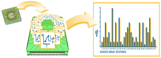 Working principle of Cyranose 320: it is based on a nano-composite array of 32 organic polymer sensors. If exposed to VOC combinations, the polymers swell, thereby modifying their electrical resistance. Raw data are registered as the increase in resistance of any single sensors and the combination of all signals results in a “breathprint”.