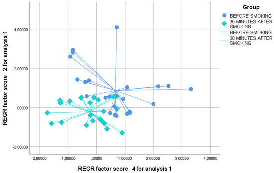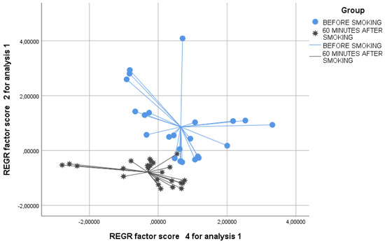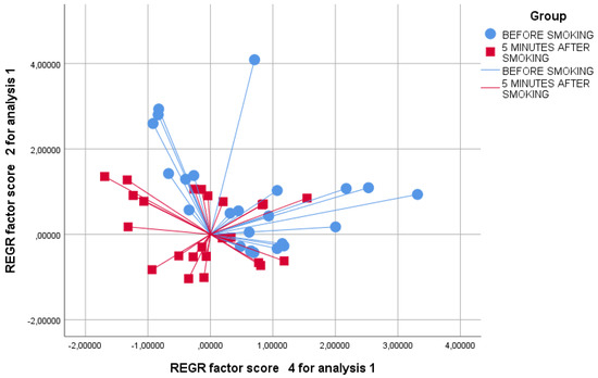 Discriminant analysis by means of PC2 and PC4 between before smoking and after smoking time periods.