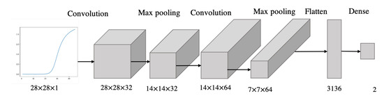 We trained a 6-layer CNN, composed of a convolution layer, max-pooling layer, convolution layer, max-pooling layer, flatten layer and dense layer (Figure 8). The inputs to the CNN are the fluorescence curve images, while the outputs are the labels “high” or “low”, classifying the leptin concentrations based on the preset threshold. The model was validated with stratified k-fold cross-validation to compensate for the class imbalance. Performance was assessed through classification accuracy and loss.