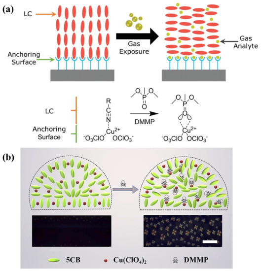 - Wang, P.-H.; Yu, J.-H.; Zhao, Y.-B.; Li, Z.-J.; Li, G.-Q. A novel liquid crystal-based sensor for the real-time identification of organophosphonate vapors. Sens. Actuators B Chem. 2011, 160, 929–935. [Google Scholar] [CrossRef]