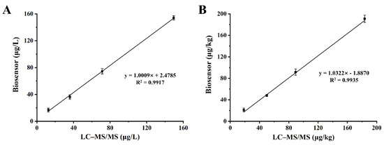 3.2.1. Analysis of Standard Curves and Cross-Reactivity for Biosensors