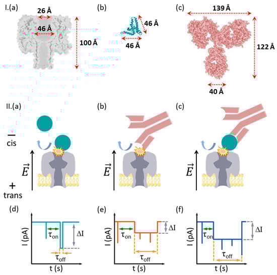 In a different set of applications, by using a combination of micropores and resistive-pulse sensing detection, the ability to perform immunoassays and detect antigen–antibody reactions was demonstrated in early 2000, by monitoring size change of latex colloids upon specific antigen–antibody binding on the colloid surface [51,52]. Later, a similar technology was employed to examine individual antibody–virus interactions [53,54]. The advent of large-scale nanopore fabrication and availability ushered in a new era in the realm of uni-molecular antibody detection and monitoring of antigen–antibody interactions [55,56,57,58,59,60,61].