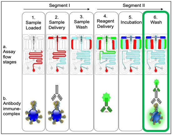 - Lin, Q.; Wen, D.; Wu, J.; Liu, L.; Wu, W.; Fang, X.; Kong, J. Microfluidic Immunoassays for Sensitive and Simultaneous Detection of IgG/IgM/Antigen of SARS-CoV-2 within 15 Min. Anal. Chem. 2020, 92, 9454–9458. [Google Scholar] [CrossRef] [PubMed]