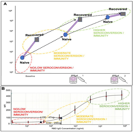 - Krammer, F.; Srivastava, K.; Alshammary, H.; Amoako, A.A.; Awawda, M.H.; Beach, K.F.; Bermúdez-González, M.C.; Bielak, D.A.; Carreño, J.M.; Chernet, R.L.; et al. Antibody Responses in Seropositive Persons after a Single Dose of SARS-CoV-2 MRNA Vaccine. N. Engl. J. Med. 2021, 384, 1372–1374. [Google Scholar] [CrossRef]