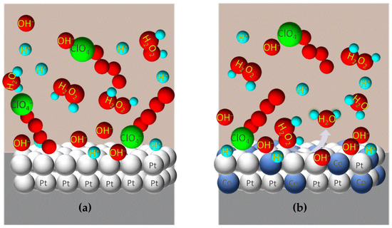 Under an energy supply-based approach, Morais et al. [18] have prepared the bimetallic electrodes of PtNi and PtCo NPs by immobilising them on a glassy carbon electrode (GCE) surface with a Nafion solution binder. The resulting Pt0.75M0.25/Vulcan XC-72 carbon black electrodes showed significant catalytic performance in the electrochemical reduction of 0.03 M H2O2, exhibiting current signals in the milliampere range. Similarly, the prepared Pt/C, Pt0.75Ni0.25/C and Pt0.75Co0.25/C electrocatalysts exhibited a rate constant for the cathodic reaction of H2O2 of 7.4 × 103, 11.2 × 103 and 11.8 × 103 mol−1 cm3 s−1, respectively, showing a high catalytic performance for H2O2 reduction. Therefore, the tested catalysts should also exhibit high electrocatalytic performance and offer an excellent application as sensitive sensors for the physiological estimation of H2O2. In this study [18], the kinetic results showed a superior catalytic activity of carbon-supported Pt alloys for the H2O2 electrochemical reduction reaction compared to monometallic Pt. Accordingly, the dependence of catalytic activity on the nature of the alloying component has been shown so that, for instance, catalytic activity increased in the following order: Pt0.75Co0.25/C > Pt0.75Ni0.25/C > Pt/C.