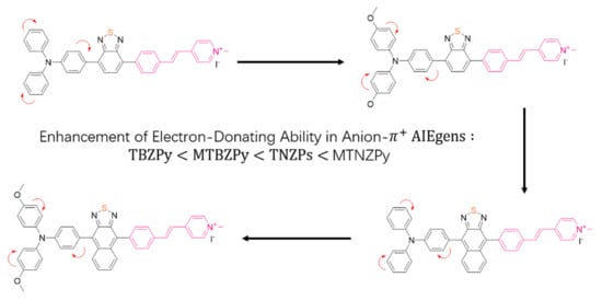 Chemical structures of the final products (TBZPy, MTBZPy, TNZPy, and MTNZPy). Adapted with permission from [106]. Copyright 2020 John Wiley and Sons.