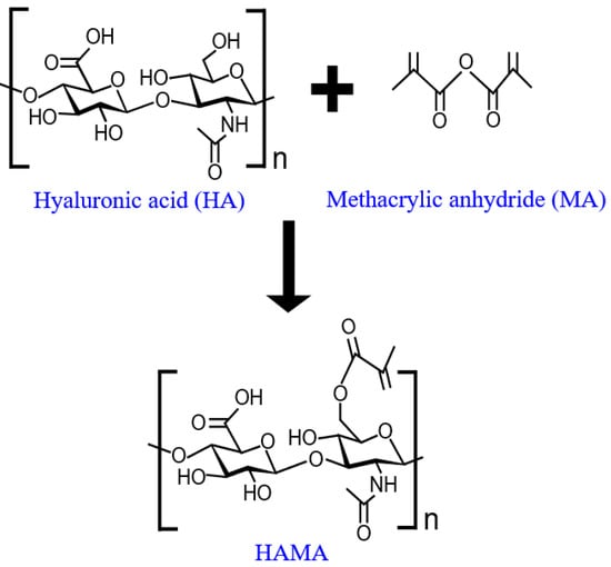 Schematic representation of the synthetic route of HAMA hydrogel.