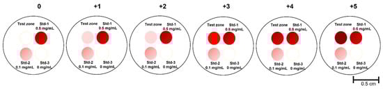 The algorithm used for assigning the semi-quantitative scores corresponding to the smartphone-reported imaging score (IS) was identical to the algorithm described above for the OS, with one exception. For each absolute value captured by the phone at the test zone (TZ), 15% coefficient of variation was allowed. Thus, for example, the IS is reported as “+1” if 0.85 × TZ and 1.15 × TZ were both higher than Std-3 intensity but lower than Std-2; it is recorded as “+2” if 0.85 × TZ was lower than Std-2 but 1.15 × TZ was greater than Std-2; recorded as “+3” if 0.85 × TZ and 1.15 × TZ were both higher than Std-2 intensity but lower than Std-1 intensity. Similar reporting was used across all included standards, not unlike the algorithm used for interpreting the OS.