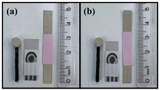 The pseudo-reference electrodes were made with lab-made inks for using in an electrochemical cell as illustrated in Figure 1 and a video of the described production can be found in the Supplementary Material Video S1. A mask (50 mm × 6 mm), cut with a cutting printer (Silhouette, Cameo 3, Belo Horizonte, Minas Gerais, Brazil), was used on an acetate sheet to delimit the area. Then, the components were mixed using the SpeedMixer™ (FlackTek, Landrum, SC, USA), and later, this ink was spread with aid of a spatula (Figure 1a). Afterward, the mask was removed, and the excess acetate sheet was cut and a new delimiter was glued, making the contact area with the solution in the size of 20 mm × 6 mm. Thus, the reference electrodes were applied in traditional electrochemical cells (Figure 1b). SPEs systems were also developed to demonstrate the applicability of the proposed ink in different electrochemical devices. For this purpose, the ink was spread on the surface of the reference electrode with the aid of a brush (Figure 1c). The same procedure was performed using a 3D-printed CB/PLA platform, as seen in Figure 1d.