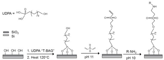- Hermanson, G.T. Silane Coupling Agents. In Bioconjugate Techniques; Elsevier: Amsterdam, The Netherlands, 2008; pp. 562–581. ISBN 9780123705013. [Google Scholar]