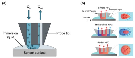 - Juncker, D.; Schmid, H.; Delamarche, E. Multipurpose microfluidic probe. Nat. Mater. 2005, 4, 622–628. [Google Scholar] [CrossRef]
