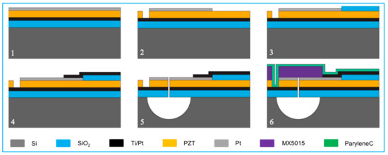 A typical fabrication processes of PMUT by the backside etching method. Reprinted from Ref. [20] with permission.
