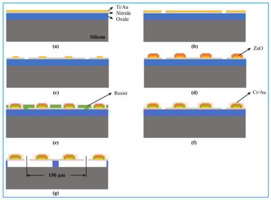 (a–g) A typical fabrication processes of PMUT by the sacrificial releasing method. Reprinted from Ref. [20] with permission.