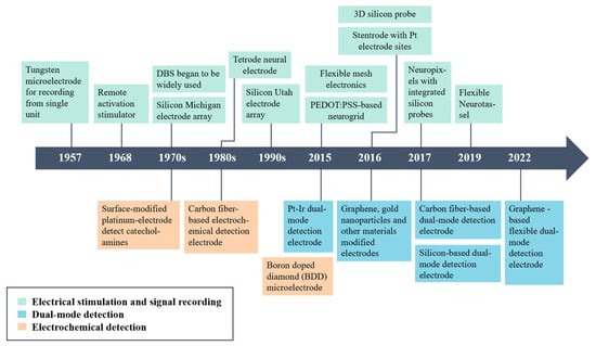 The development trend of various electrodes is indicated on the time axis [35,36,38,39,40,41,42,43,44,45,46].