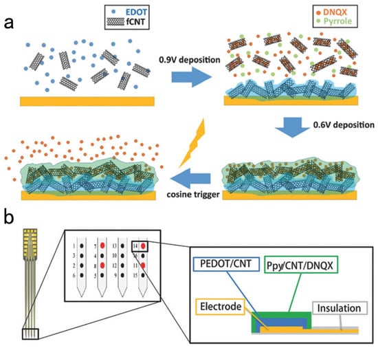 - Abidian, M.R.; Ludwig, K.A.; Marzullo, T.C.; Martin, D.C.; Kipke, D.R. Interfacing Conducting Polymer Nanotubes with the Central Nervous System: Chronic Neural Recording using Poly (3,4-ethylenedioxythiophene) Nanotubes. Adv. Mater. 2009, 21, 3764–3770. [Google Scholar] [CrossRef] [PubMed]