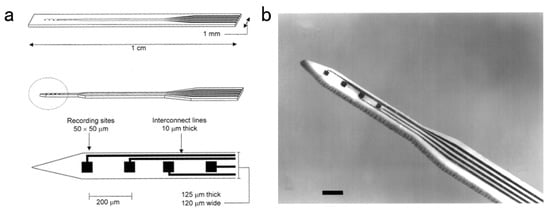- Fekete, Z. Recent advances in silicon-based neural microelectrodes and microsystems: A review. Sens. Actuators B-Chem. 2015, 215, 300–315. [Google Scholar] [CrossRef]