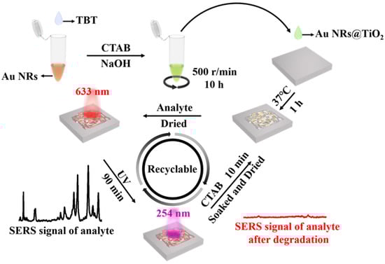 The fabrication and application of Au NRs@TiO2 recyclable SERS substrate.