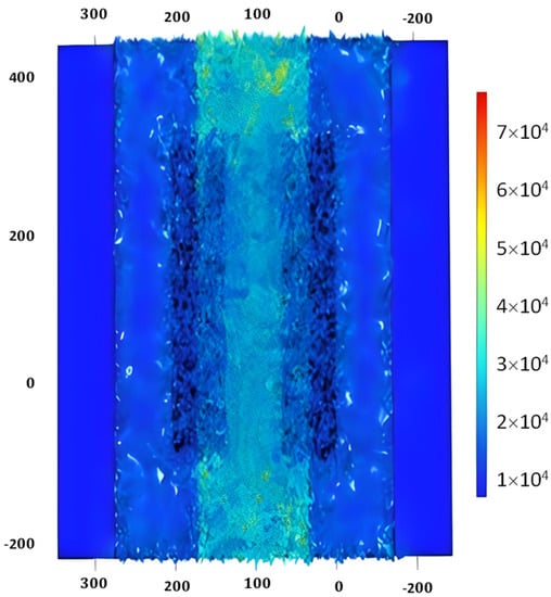 SAW characteristics are determined by using a piezoelectric device interface module, which is the Multiphysics module of the Piezoelectric effect coupled with solid mechanics and electrostatics. The boundary condition is the most critical part of the simulation to define the model. For this model, structural and electrical boundaries are implemented. The bottom of the SAW device is assigned as a fixed constraint since the surface wave is assumed to disappear upon moving two or three wavelengths towards the bottom. The left and right sides of the device are assumed to be periodic boundaries. The periodic boundary signifies the same value of electric potential and displacement across the desired boundary of the model. The rest of the sides of the device are free from constraints. The meshing of the device is performed by physics-controlled mesh with the preassigned setting of the element at extra fine (Figure 7). The mesh consists of 625,937 domain elements, 161,930 boundary elements and 52,214 edge elements.