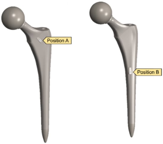 After validating both the sensor and hip implant individually, the work was extended to combine both systems to test the feasibility of THR applications. Figure 14 highlights the SAW sensor used in the hip implant at two different locations.