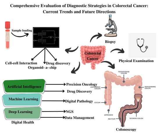 This review provides a comprehensive comparison of the standard practices in CRC diagnosis and treatment. It offers a critical assessment of the strengths and limitations of the established approaches, highlighting the need for more innovative and effective strategies, as illustrated in Figure 1. In this context, the article delves into the emerging field of microfluidics, which has garnered significant attention as a promising avenue for advancing research and diagnosis in CRC. Lastly, the article sheds light on the integration of artificial intelligence (AI) in the field of CRC, highlighting the advancements, challenges, and future directions in this exciting area.