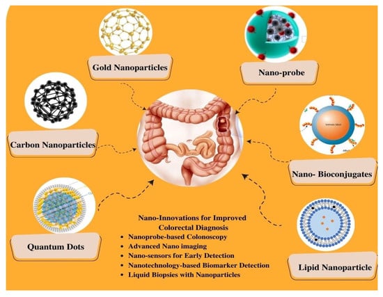 - Gogoi, P.; Kaur, G.; Singh, N.K. Nanotechnology for colorectal cancer detection and treatment. World J. Gastroenterol. 2022, 28, 6497–6511. [Google Scholar] [CrossRef] [PubMed]