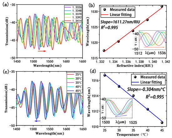- Chen, X.; Li, X.; Yi, D.; Hong, X.; Chen, Y. Plasmonic Tapered-Fiber Interference Sensor for Simultaneously Detecting Refractive Index and Temperature. Opt. Lett. 2021, 46, 6071. [Google Scholar] [CrossRef]