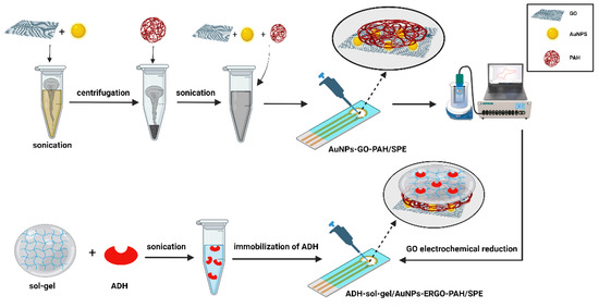 2.3. Preparation of ADH-Sol-Gel/AuNPs-ERGO-PAH/SPE Biosensor