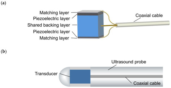 - Su, M.; Zhang, Z.Q.; Hong, J.H.; Huang, Y.C.; Mu, P.T.; Yu, Y.Y.; Liu, R.; Liang, S.Z.; Zheng, H.R.; Qiu, W.B. Cable-shared dual-frequency catheter for intravascular ultrasound. IEEE Trans. Ultrason. Ferroelectr. Freq. 2019, 66, 849–856. [Google Scholar] [CrossRef]