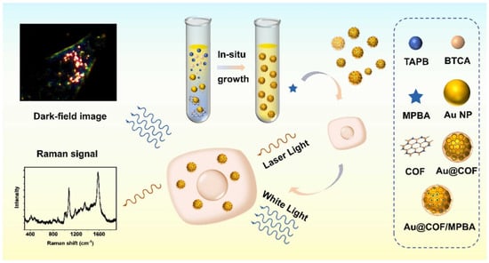 Schematic illustration of synthesis of Au@COF nanoparticle for detection of intracellular metabolite through dual-mode SERS/DFM technique [].