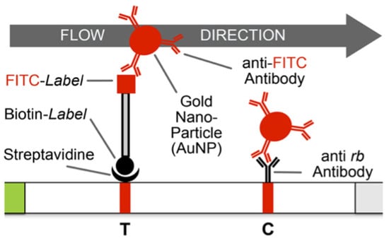 Incorporating modifications or labels into the LAMP/RT-LAMP amplification product (amplicon) during the amplification process of LAMP and RPA has also been successfully demonstrated. Introducing biotin and FITC/FAM labels [] enables the readout on a paper-based, sensitive immunochromatographic lateral flow assay (LFA) platform with high efficacy and synergism [,,].
