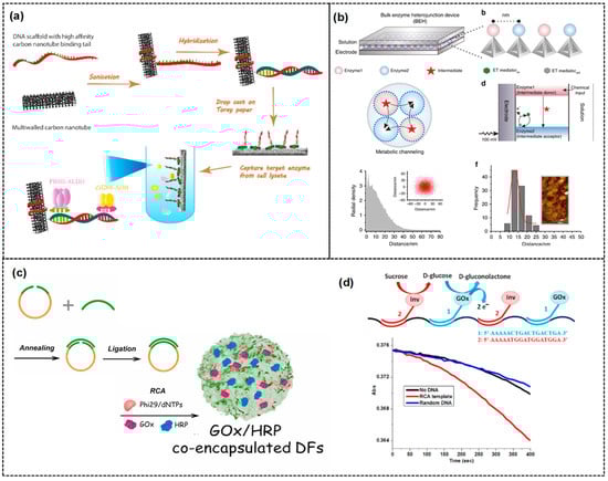 - Yan, Y.; Qiao, Z.; Hai, X.; Song, W.; Bi, S. Versatile Electrochemical Biosensor Based on Bi-Enzyme Cascade Biocatalysis Spatially Regulated by DNA Architecture. Biosens. Bioelectron. 2021, 174, 112827. [Google Scholar] [CrossRef] [PubMed]