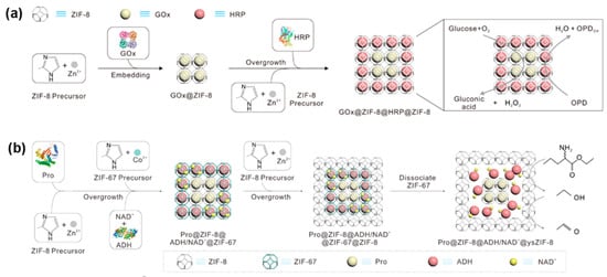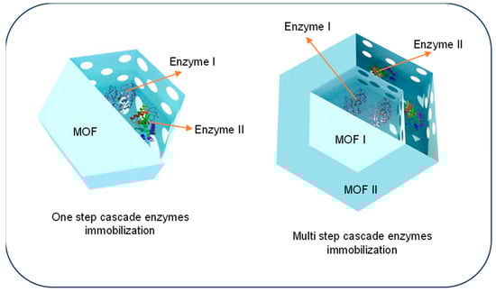 - Liang, J.; Liang, K. Multi-Enzyme Cascade Reactions in Metal-Organic Frameworks. Chem. Rec. 2020, 20, 1100–1116. [Google Scholar] [CrossRef]