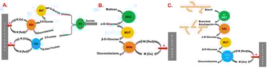 - Toda, R.; Tatara, R.; Horiba, T.; Komaba, S. Multi-Enzyme-Modified Bioanode Utilising Starch as a Fuel. ChemElectroChem 2021, 8, 4199–4206. [Google Scholar] [CrossRef]