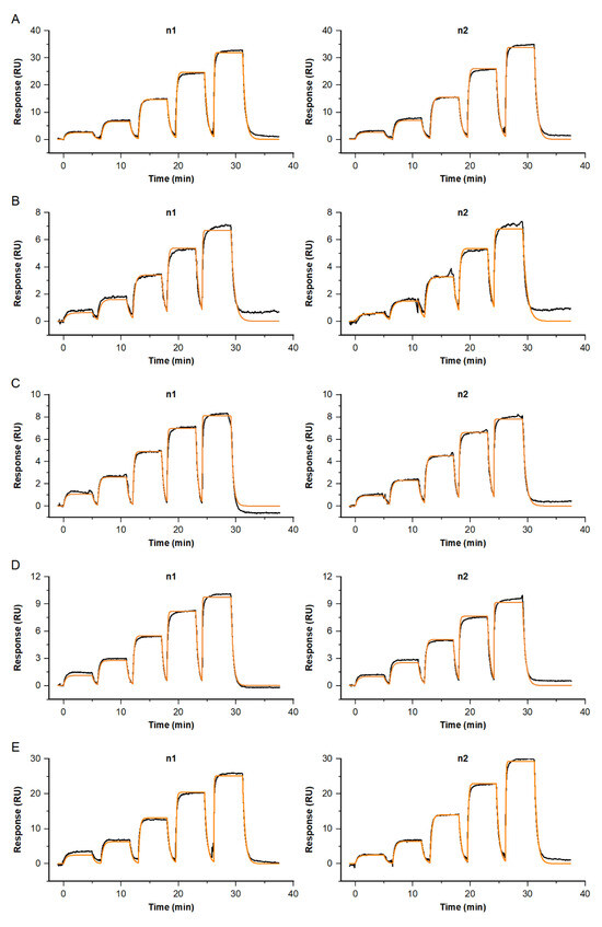 - Karlsson, R.; Katsamba, P.S.; Nordin, H.; Pol, E.; Myszka, D.G. Analyzing a kinetic titration series using affinity biosensors. Anal. Biochem. 2006, 349, 136–147. [Google Scholar] [CrossRef]