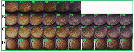 Dissolution of Au film at the anode of the BPE when the cathode of the GP BPE was modified with Au (A), Ab1/Au (B), SiO2-Ab2/PSA (10 ng/mL)/Ab1/Au (C), and SiO2-Ab2/PSA (100 ng/mL)/Ab1/Au (D). The external voltage was 3.0 V.