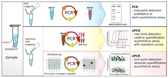PCR comparisons: end-point PCR, qPCR and dPCR. Reprinted with permission from Ref. [].Copyright 2018, Quan et al.