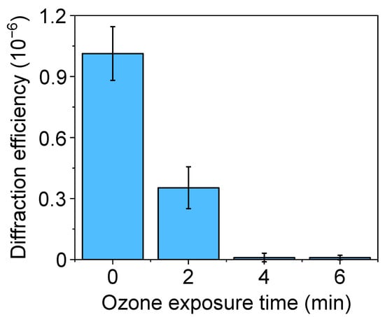 Diffraction efficiency of protein patterns fabricated by µCP on glass, with PDMS stamps treated by different UV-ozone exposure times before the inking.