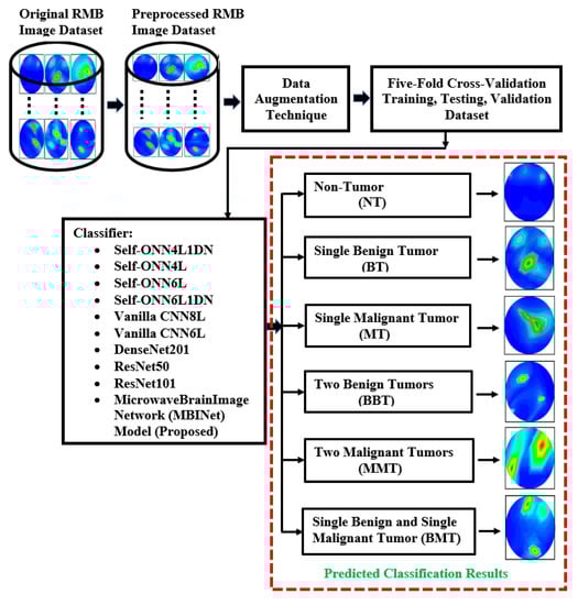 - According to the authors’ knowledge, this is the first study to propose a lightweight classification model called microwave brain image network” (MBINet) to classify RMB tumor images using a new machine learning paradigm called the Self-organized operational neural network (Self-ONN) architecture.