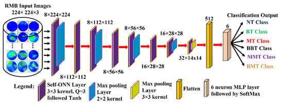 - A new Self-ONN model, MBINet, four other Self-ONN models, two conventional CNN models, and three pretrained models (DenseNet201, ResNet50, and ResNet101) are investigated on the RMB tumor images to classify six classes to show the usefulness of the suggested MBINet classification model.