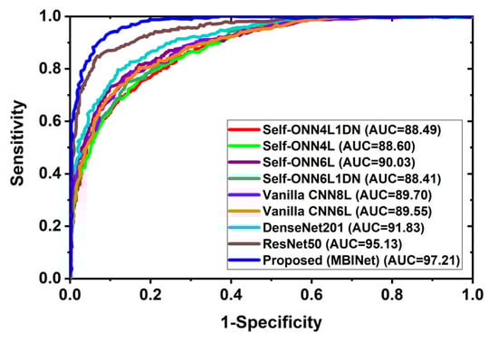 - The proposed MBINet model is compared with the seven most recent state-of-the-art models to verify the classification outcomes.