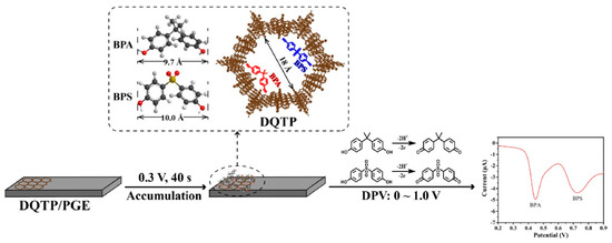 Schematic illustration of a DQTP-based electrochemical sensor for the simultaneous determination of BPA and BPS from Ref. [78]. Copyright 2022 Elsevier.