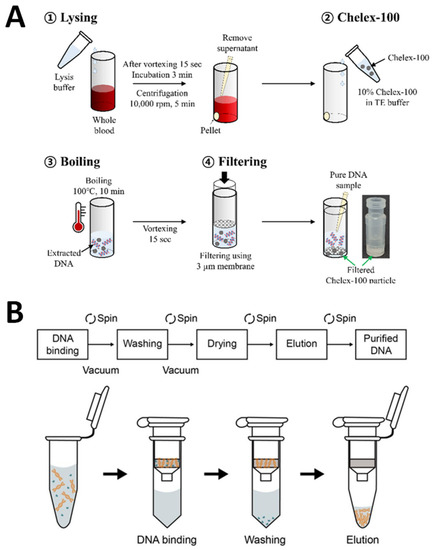 - Tagliaferro, S.S.; Zejnelagic, A.; Farrugia, R.; Wettinger, S.B. Comparison of DNA extraction methods for samples from old blood collections. Biotechniques 2021, 70, 243–250. [Google Scholar] [CrossRef]