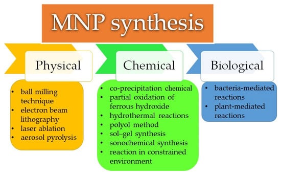 Despite the huge number of scientific publications devoted to MNP synthesis, here, we briefly discuss the main options (Figure 1).